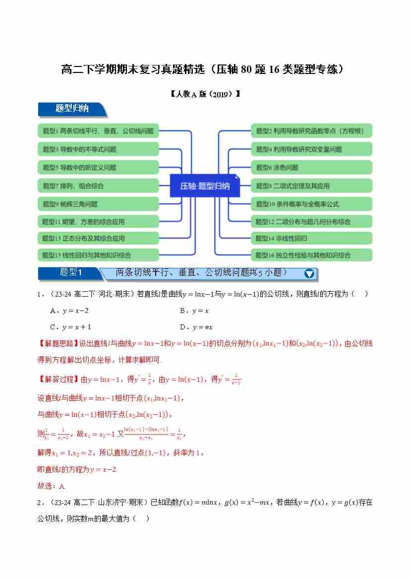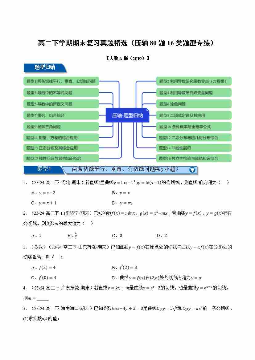 高二下学期期末复习真题精选(压轴80题16类题型专练)(学生版)