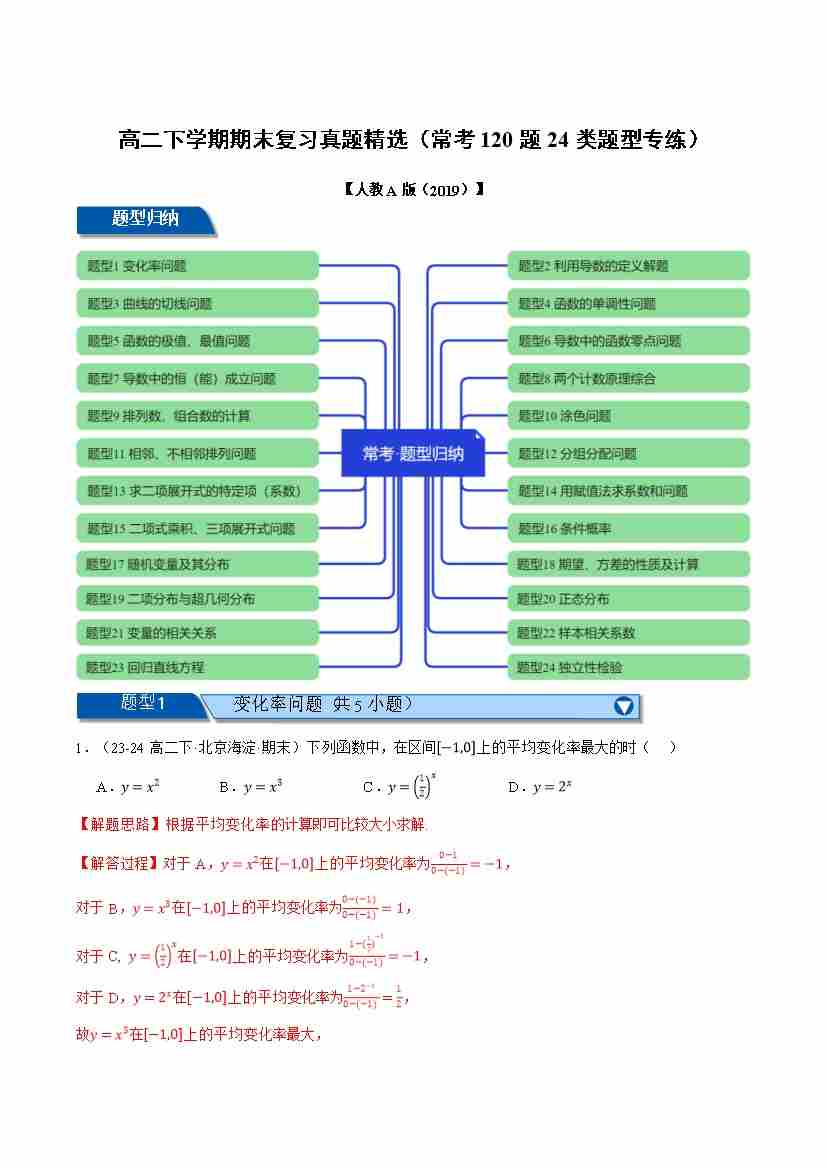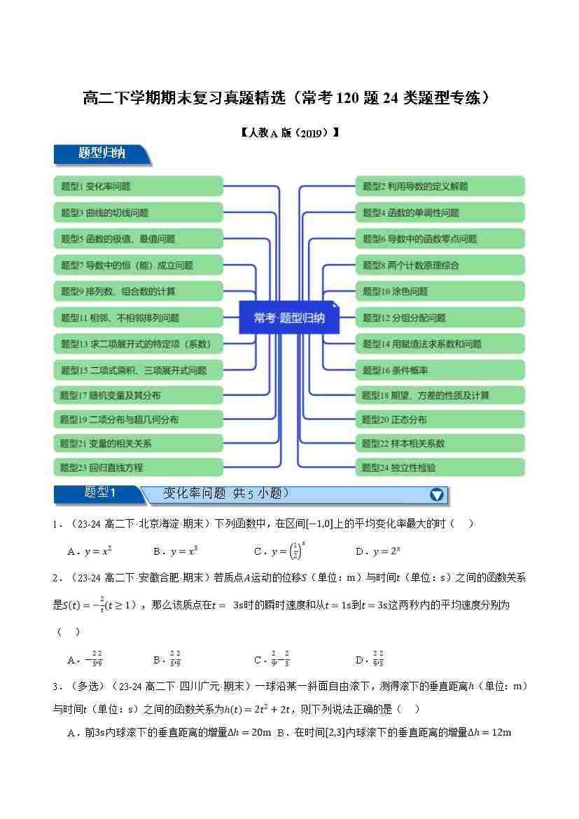 高二下学期期末复习真题精选(常考120题24类题型专练)(学生版)
