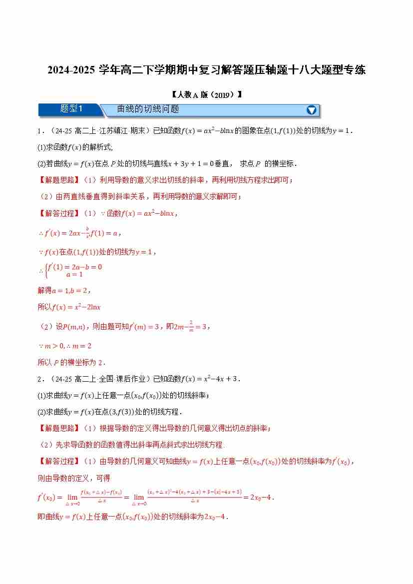 高二下学期期中复习解答题压轴题十八大题型专练(教师版)
