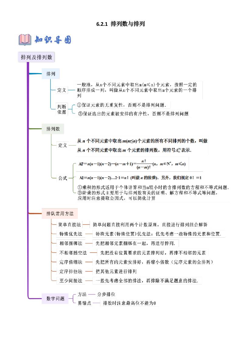 6.2.1 排列数与排列(学生版)