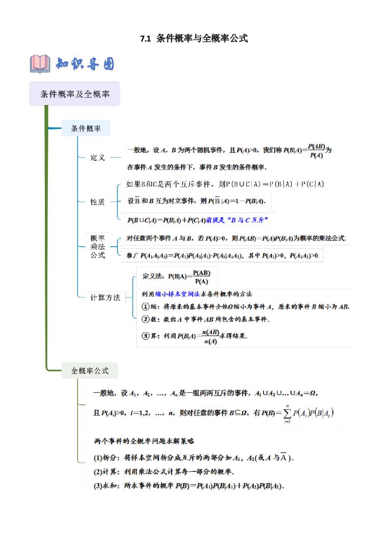 7.1 条件概率与全概率公式(学生版)
