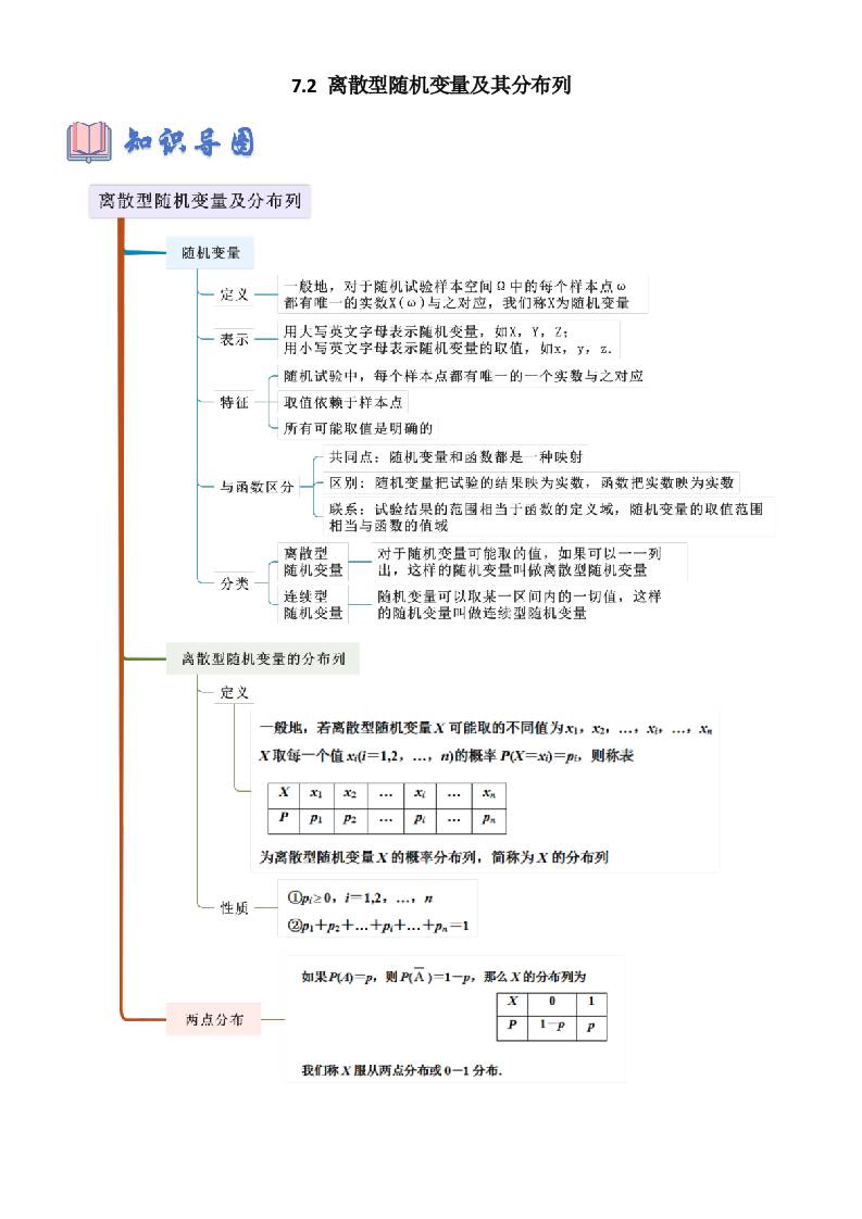 7.2 离散型随机变量及其分布列(教师版)