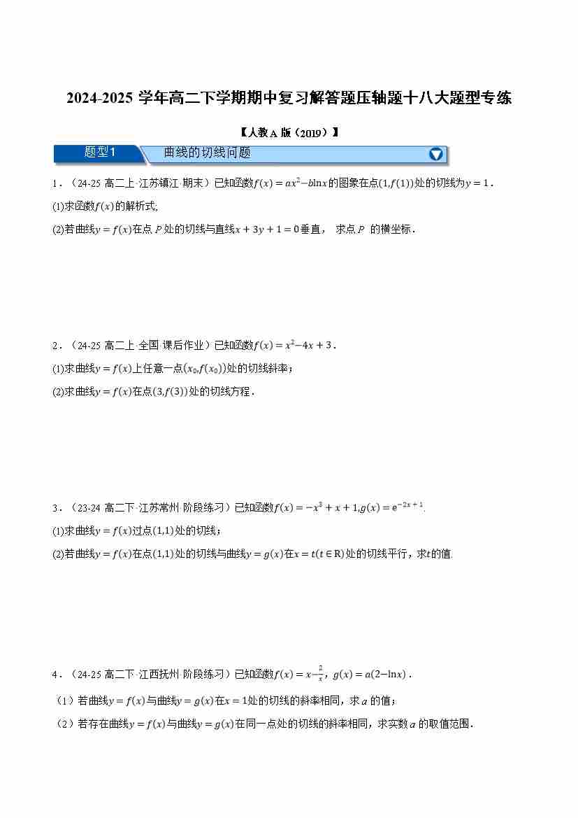 高二下学期期中复习解答题压轴题十八大题型专练(学生版)