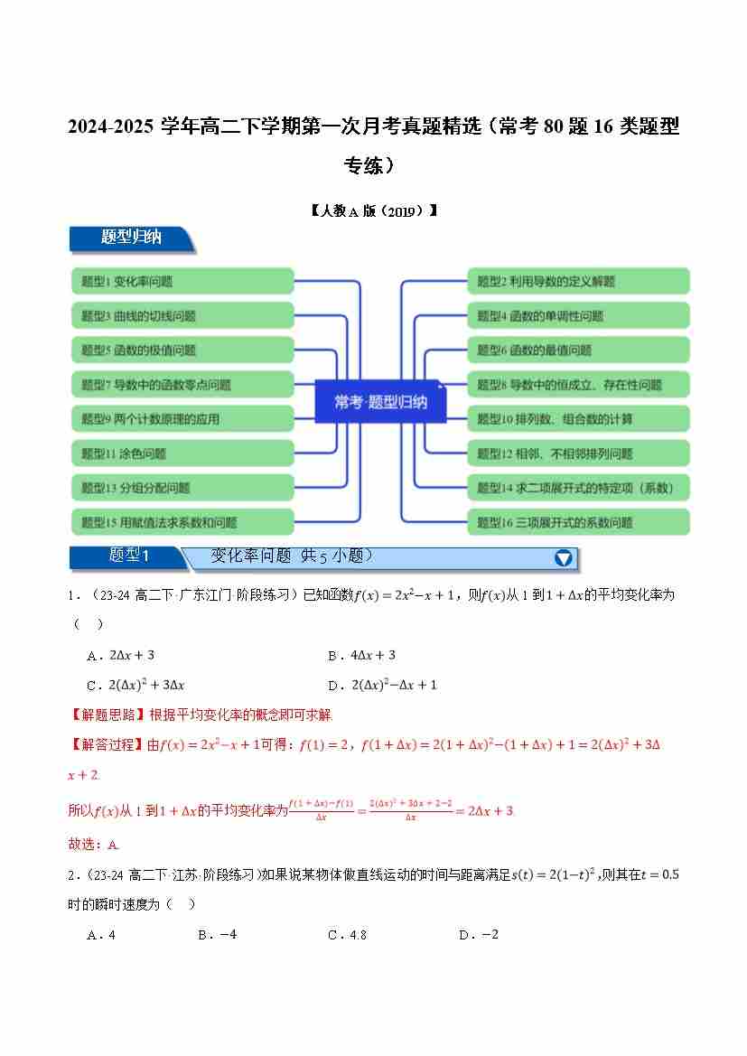 高二下学期第一次月考真题精选(常考80题16类题型专练)(教师版)