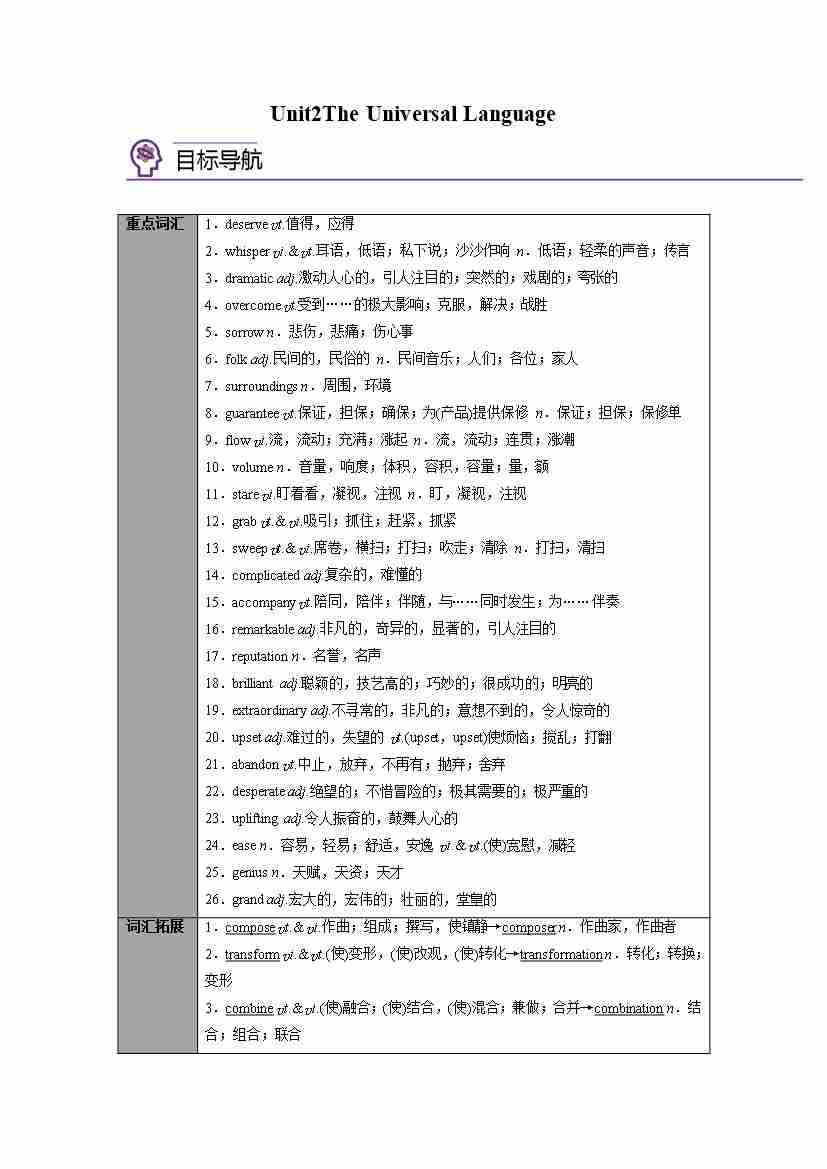 选择性必修第一册 Unit2 The Universal Language(教师版)
