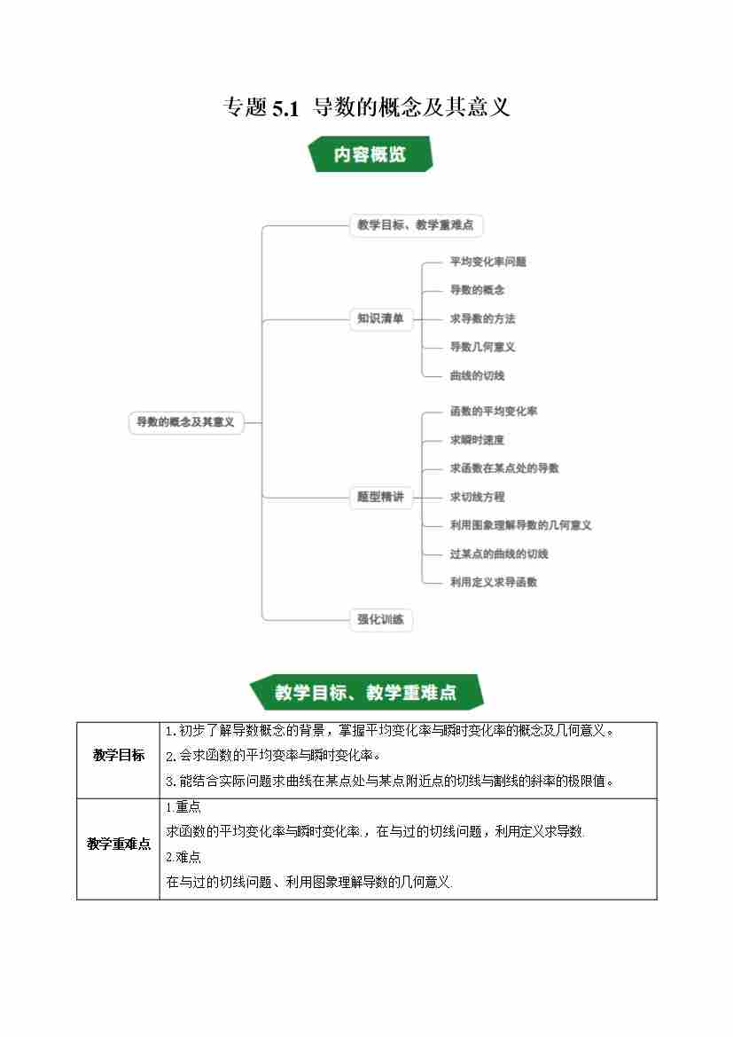 专题5.1 导数的概念及其意义(高效培优讲义)(学生版)