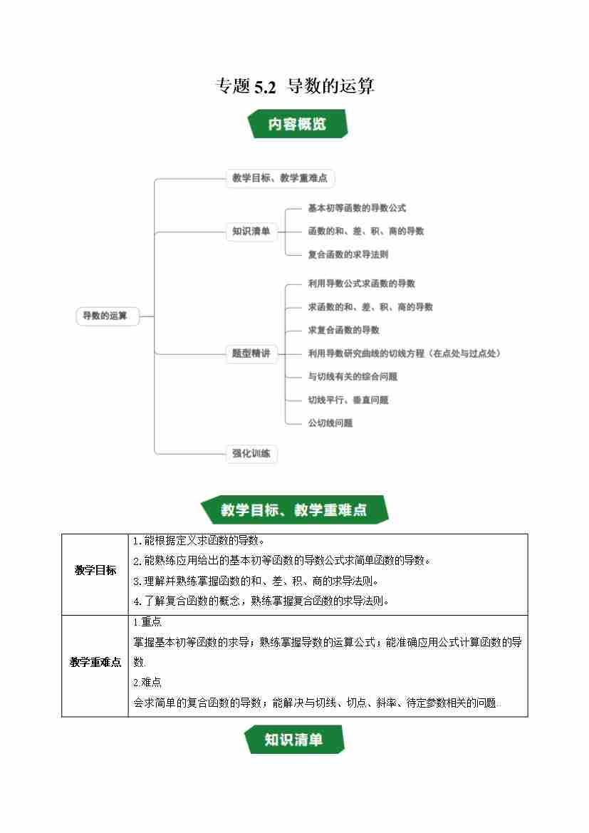专题5.2 导数的运算(高效培优讲义)(学生版)