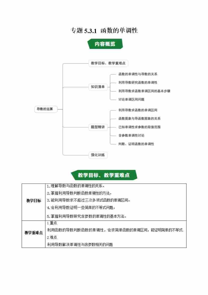 专题5.3.1 函数的单调性(高效培优讲义)(学生版)