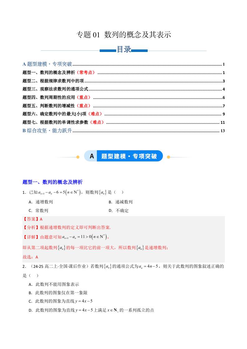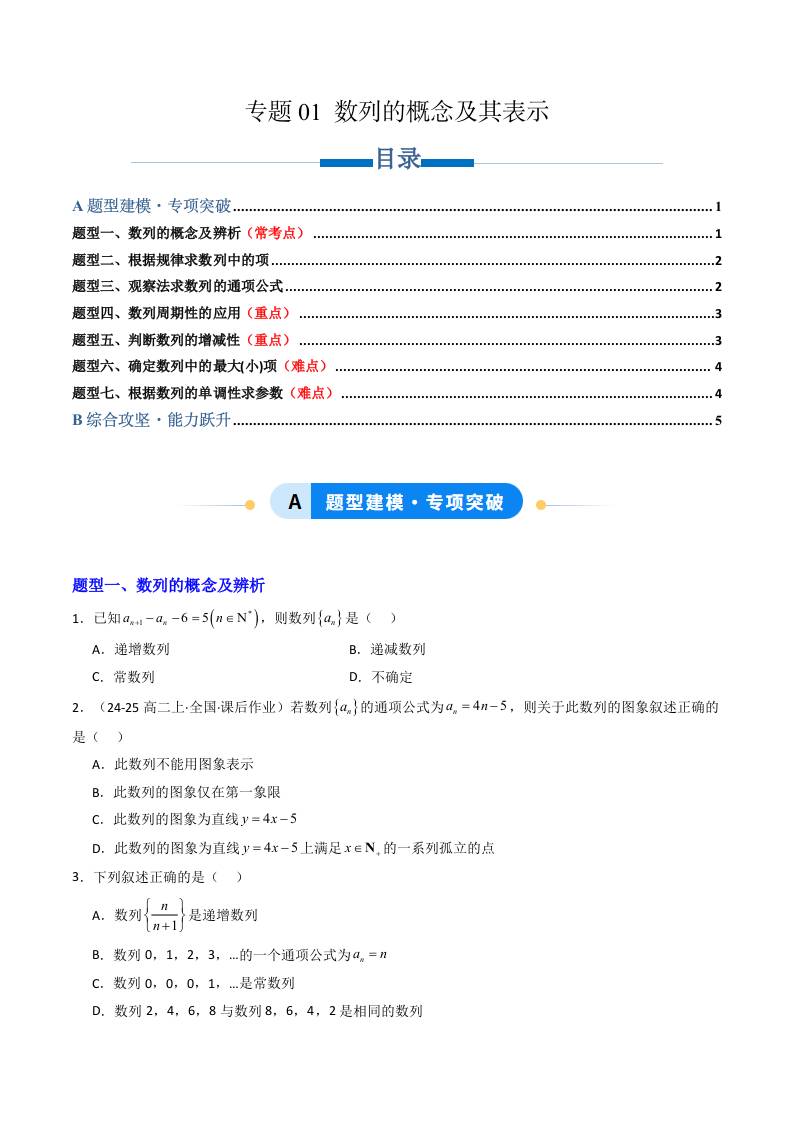 专题01 数列的概念及其表示(专项训练7大重点题型)(学生版)