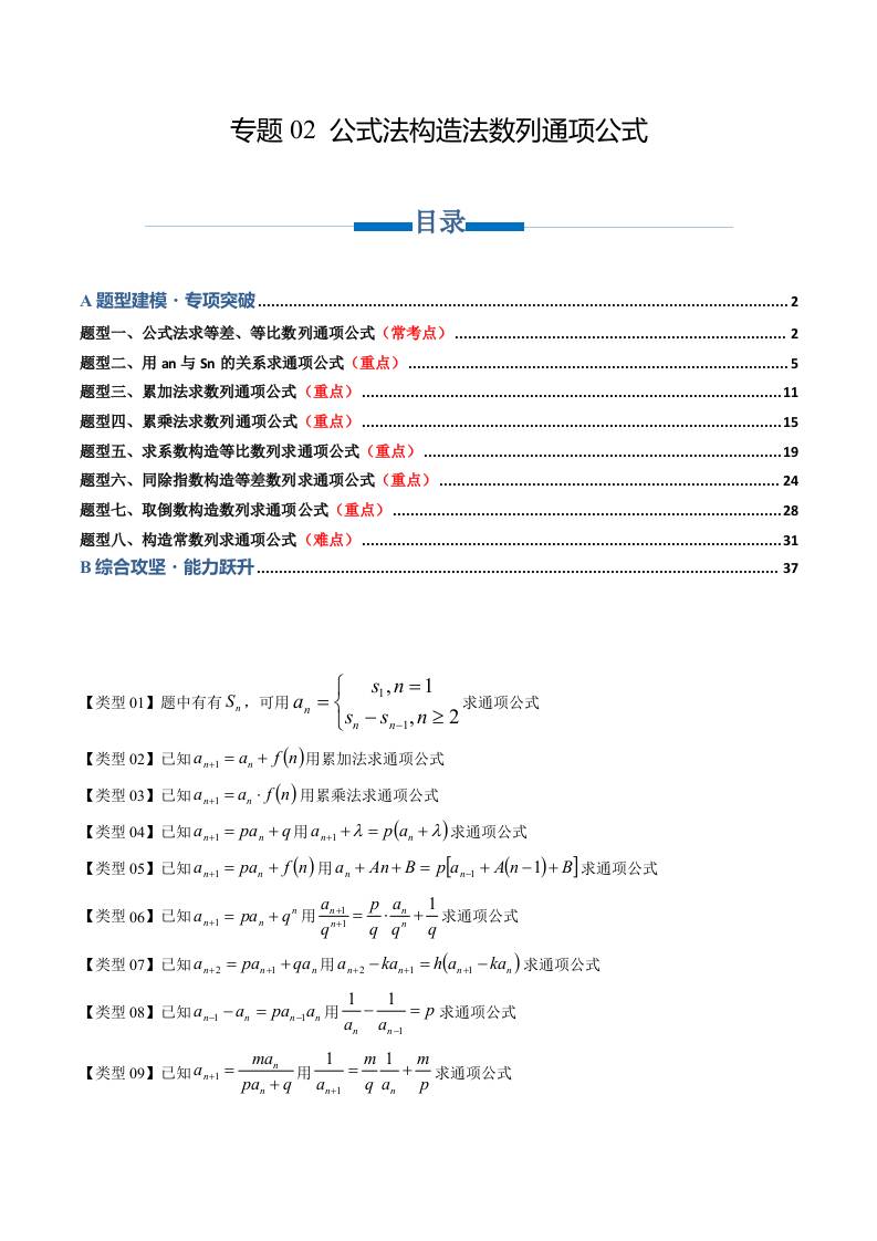 专题02 公式法构造法数列通项公式(专项训练8大重点题型)(学生版)