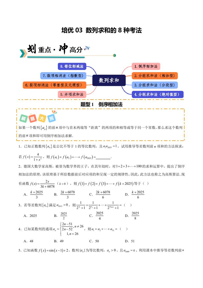 培优03 数列求和的8种考法(专项训练)(学生版)