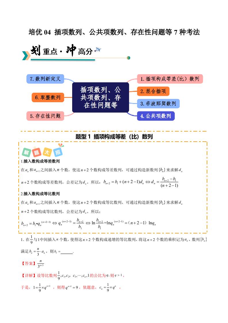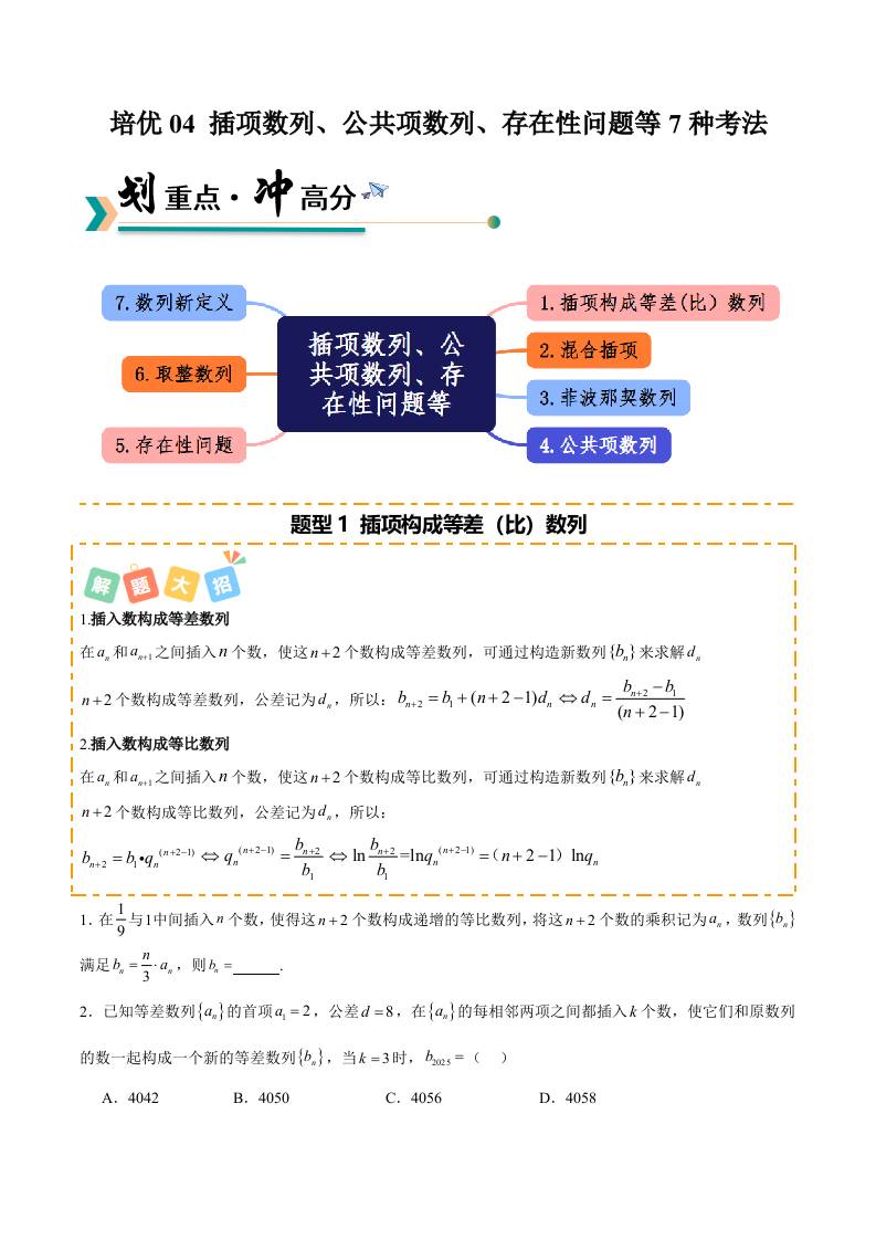 培优04 插项数列、公共项数列、存在性数列等7种考法(专项训练)(学生版)