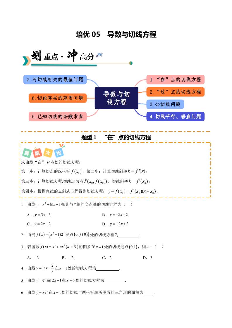 培优05 导数与切线方程的7种重难题型(专项训练)(原卷版)