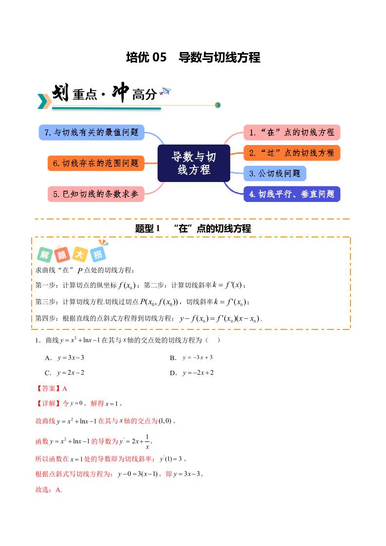 培优05 导数与切线方程的7种重难题型(专项训练)(解析版)
