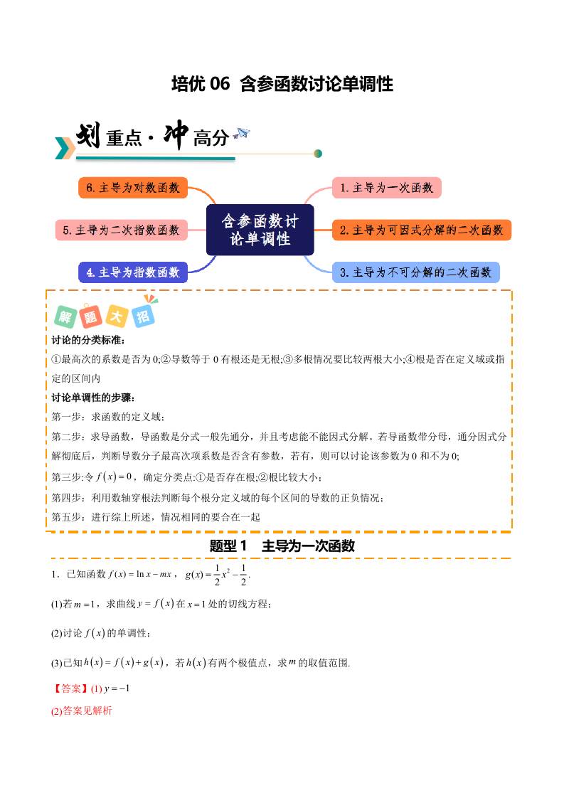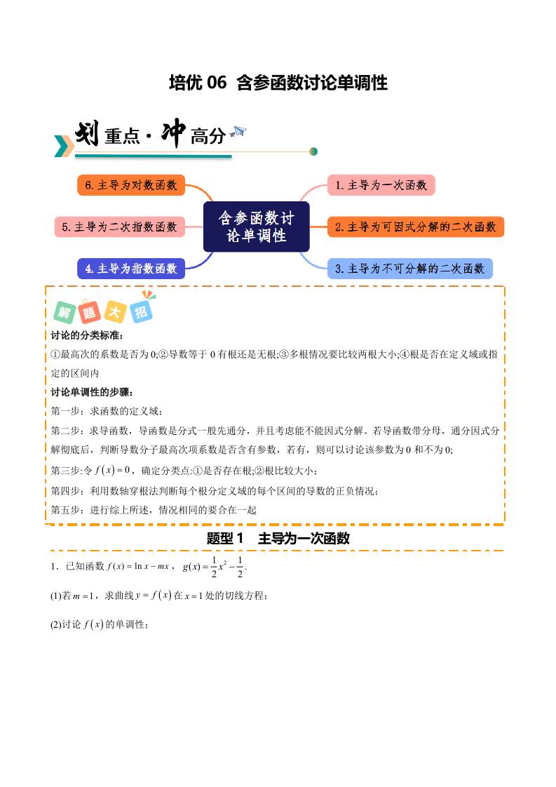 培优06 含参函数讨论单调性6种重难题型(专项训练)(原卷版)