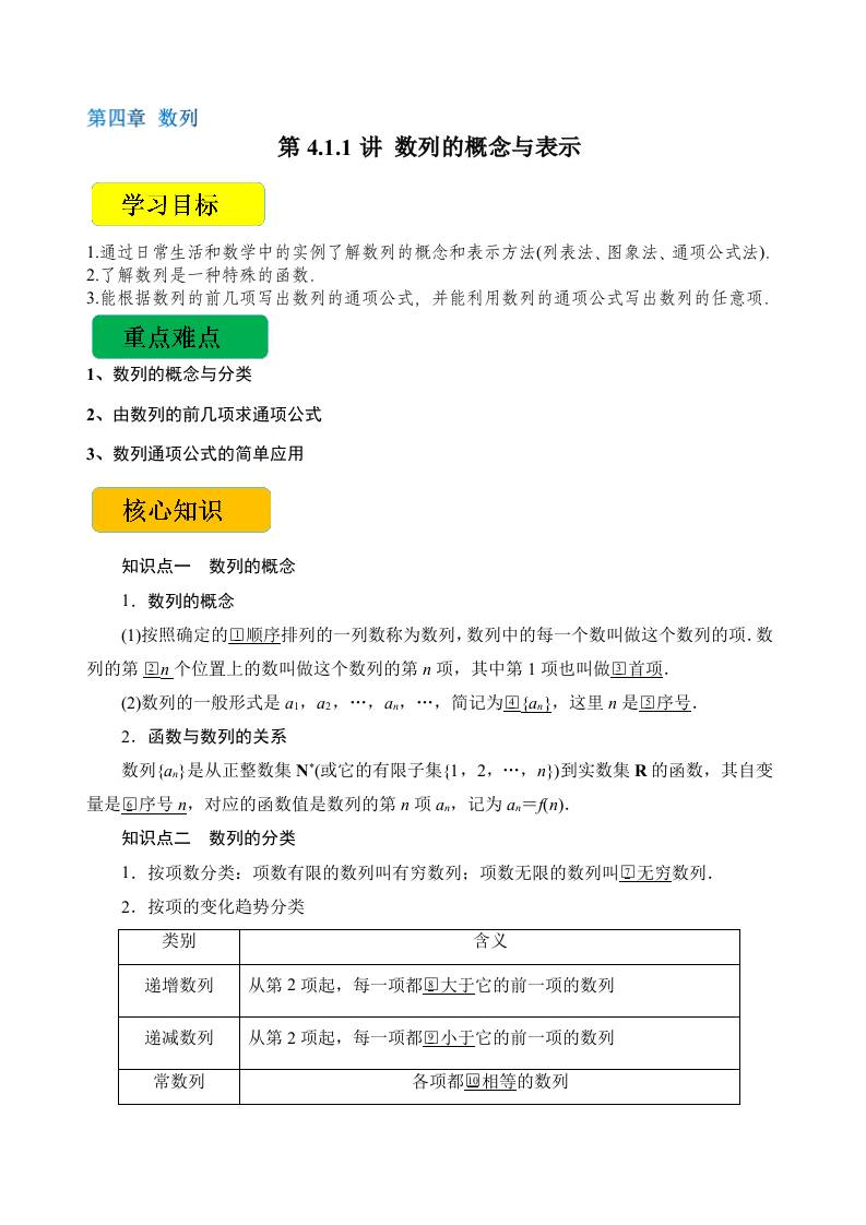 第4.1.1讲 数列的概念与表示(教师版)-(人教A版必修第二册)
