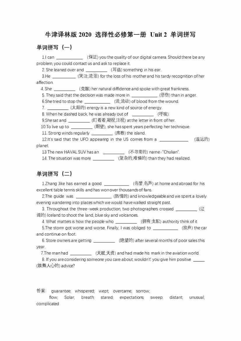 Unit 2 单词拼写(有答案)