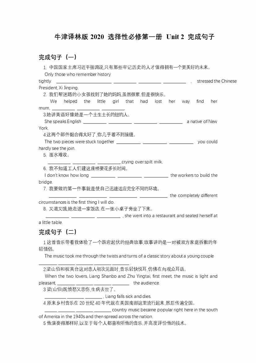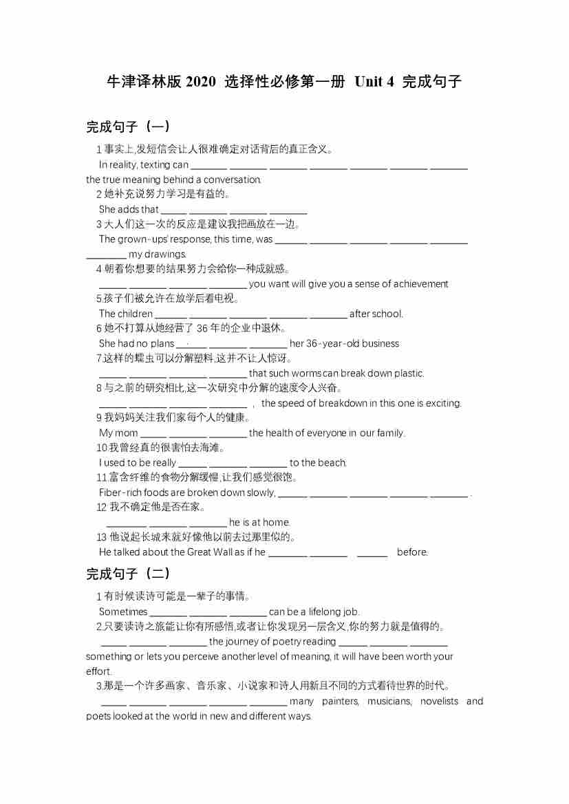 Unit 2 完成句子(有答案)