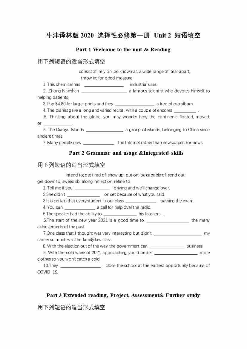 Unit 2 短语填空(有答案)