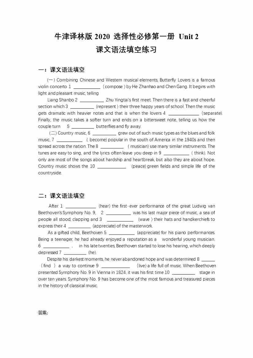 Unit 2课文语法填空(有答案)