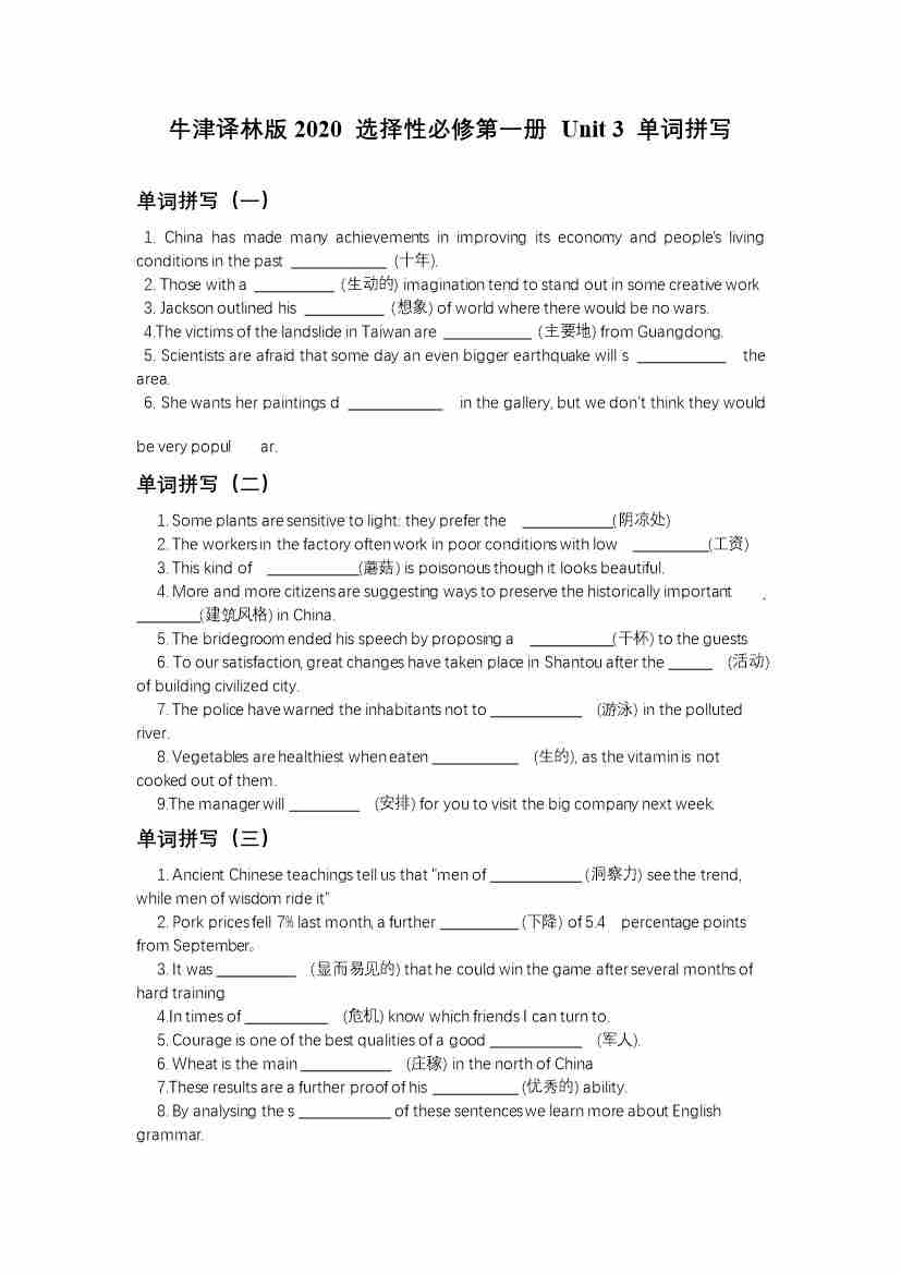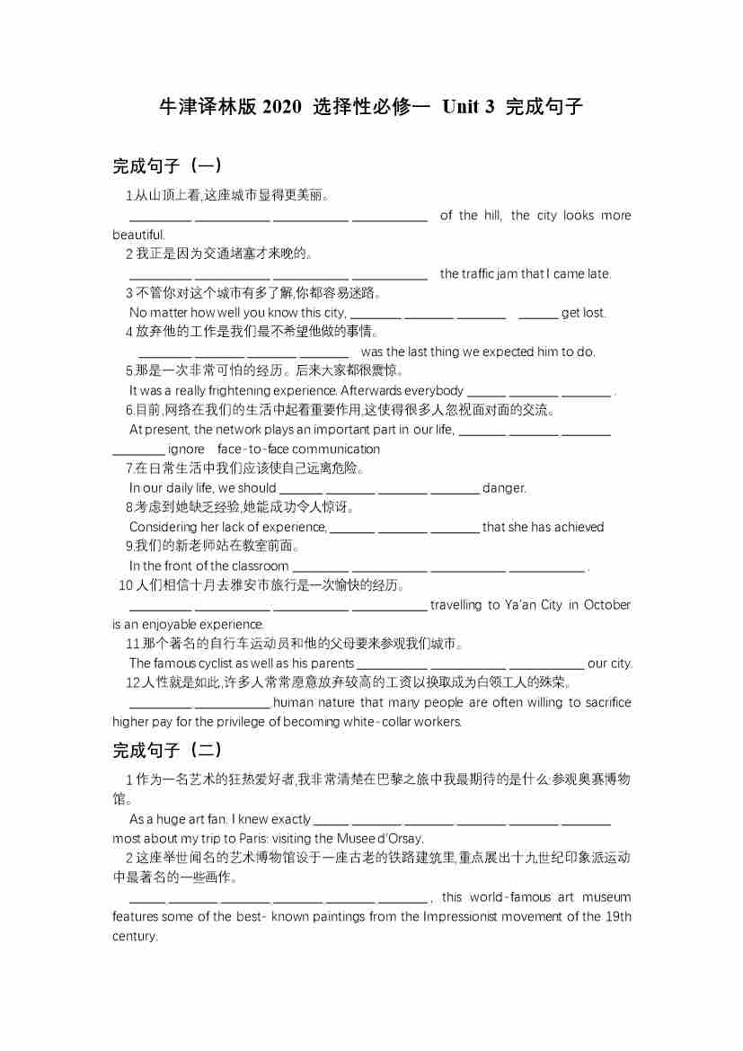 Unit 3 完成句子(有答案)