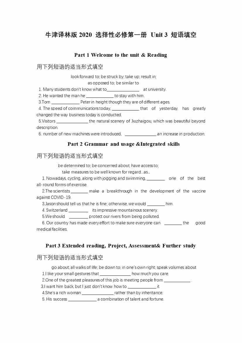 Unit 3 短语填空(有答案)
