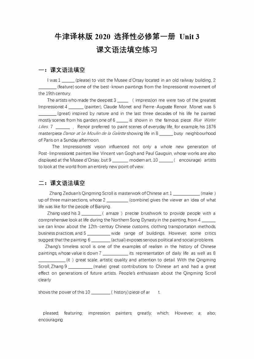 Unit 3课文语法填空(有答案)