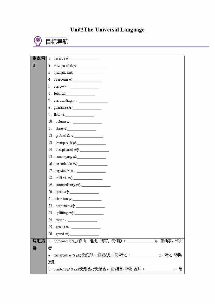 选择性必修第一册 Unit2 The Universal Language(学生版)