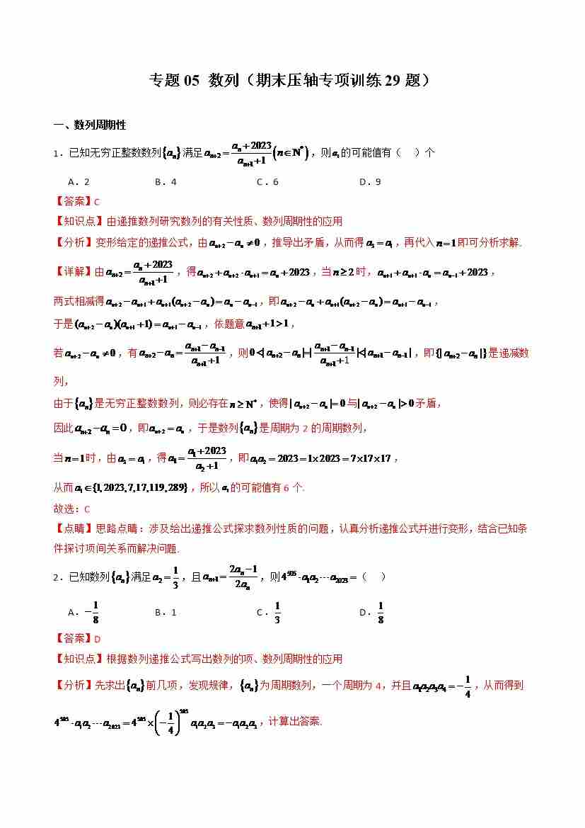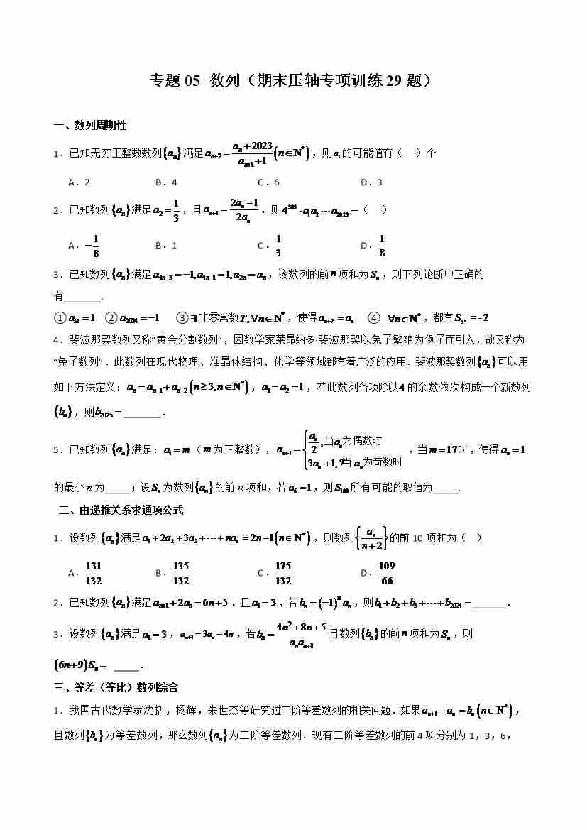 专题05 数列(期末压轴专项训练29题)(学生版)