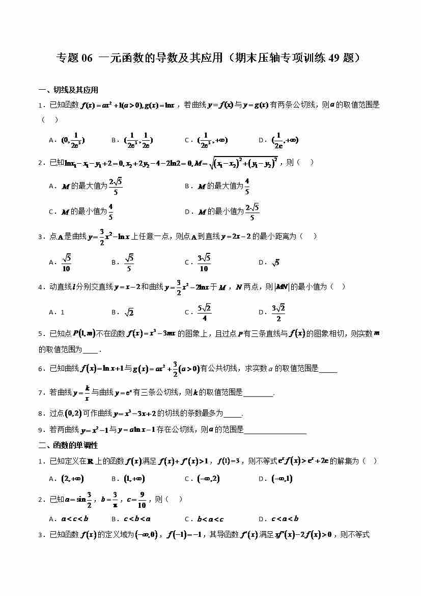 专题06 一元函数的导数及其应用(期末压轴专项训练49题)(学生版)