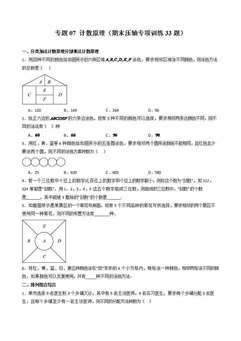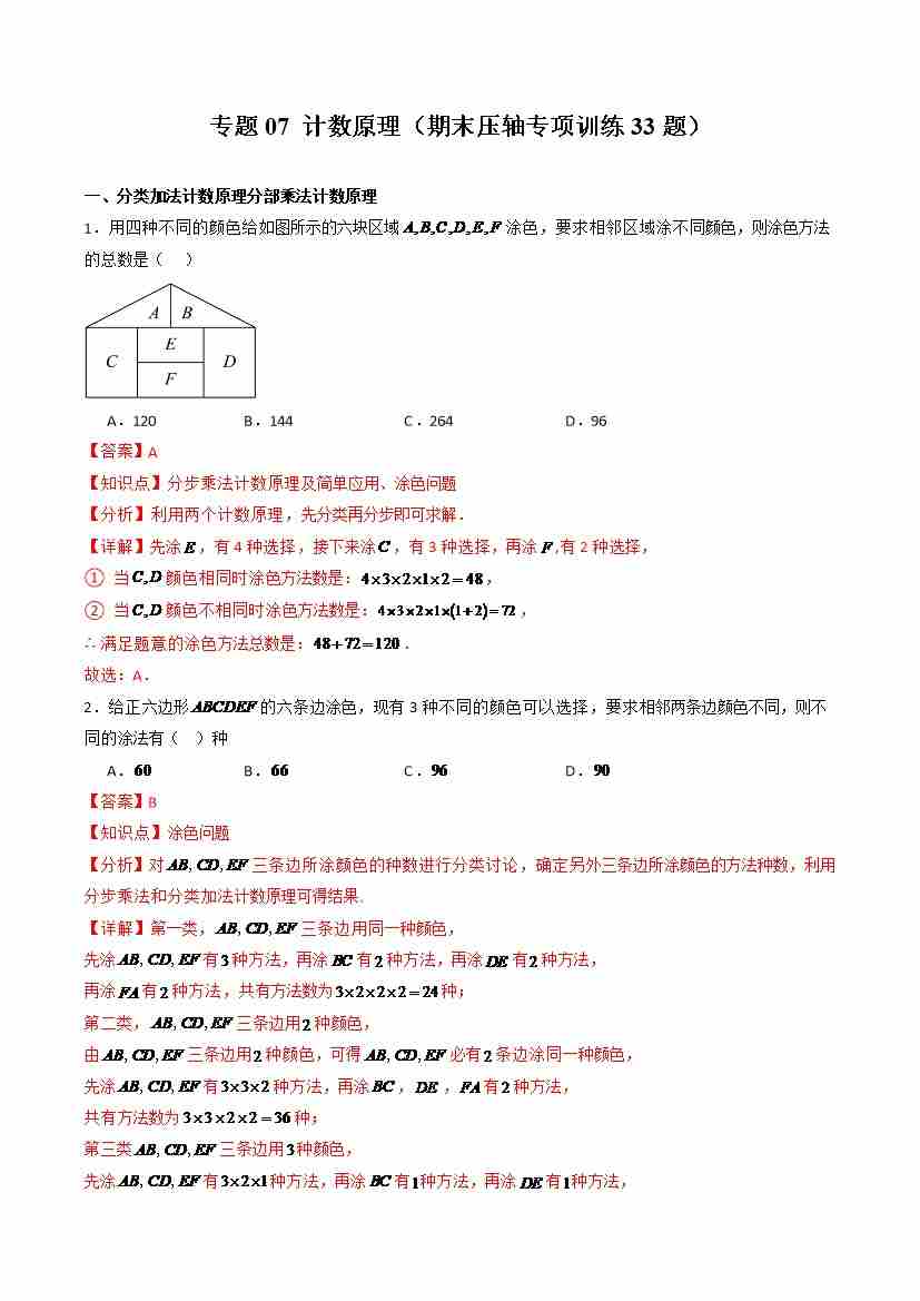 专题07 计数原理(期末压轴专项训练33题)(学生版)