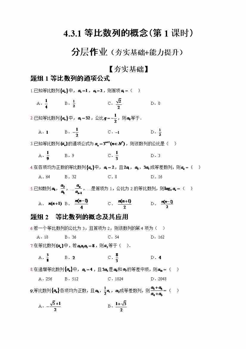 4.3.1等比数列的概念(第1课时)(分层作业)(原卷版)-(人教A版2019选择性必修第二册)