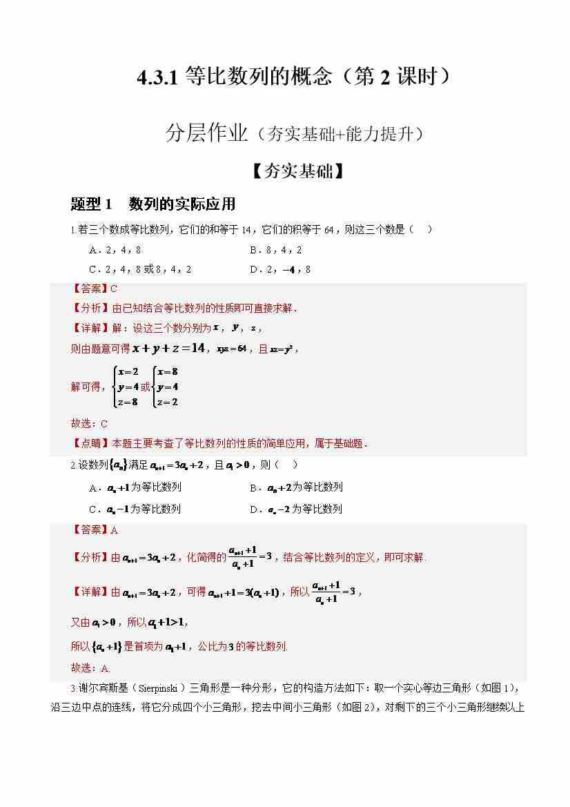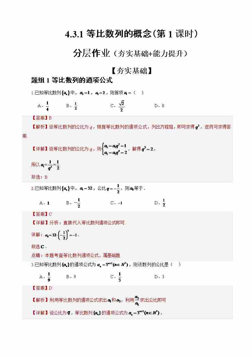 4.3.1等比数列的概念(第2课时)(分层作业)(解析版)-(人教A版2019选择性必修第二册)