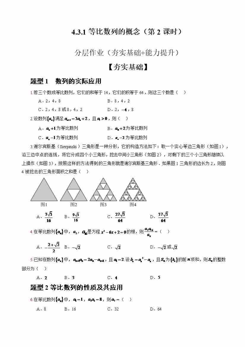 4.3.1等比数列的概念(第2课时)(分层作业)(原卷版 )-(人教A版2019选择性必修第二册)