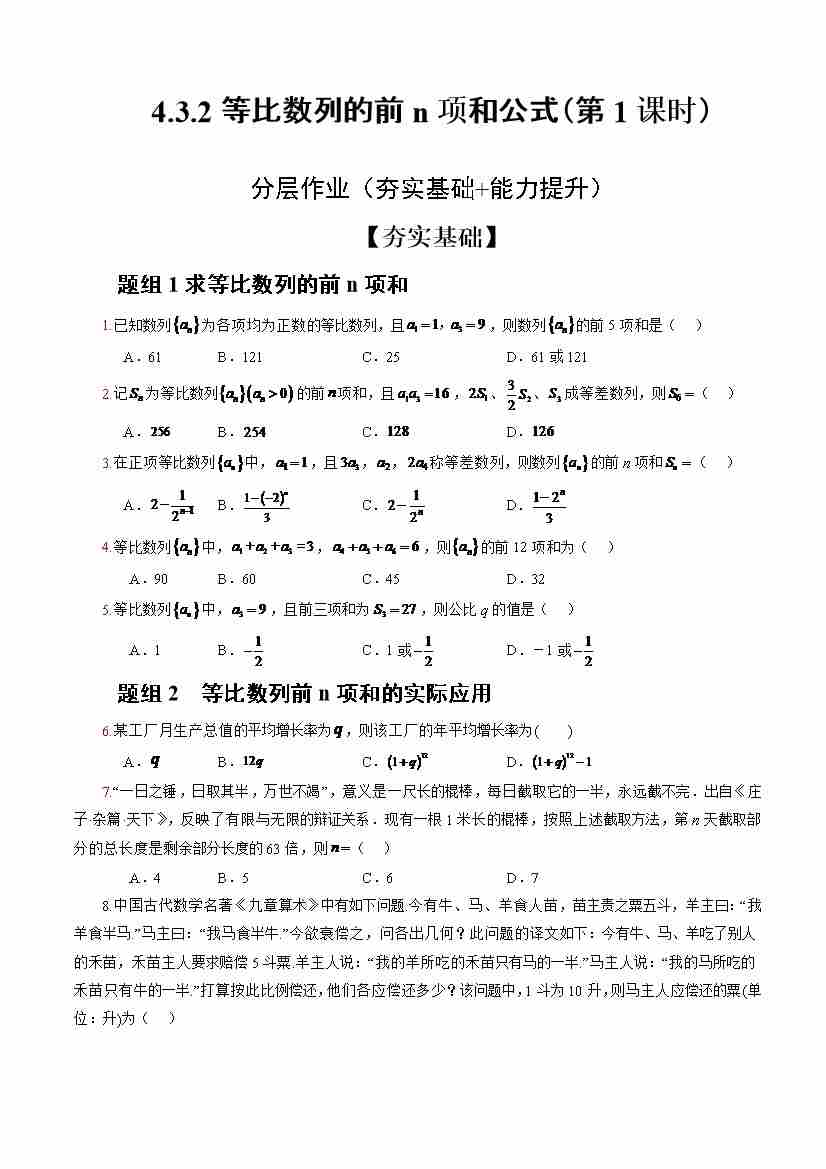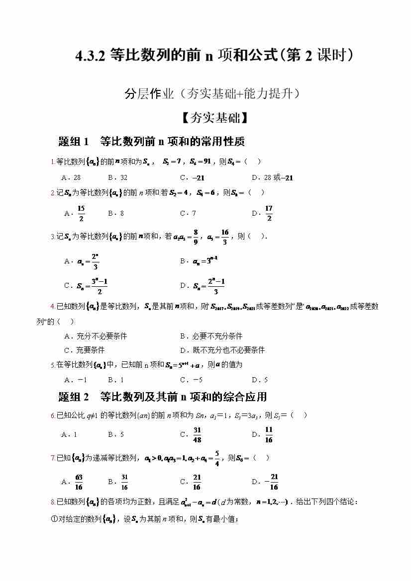 4.3.2等比数列的前n项和公式(第2课时)(分层作业)(原卷版)-(人教A版2019选择性必修第二册)