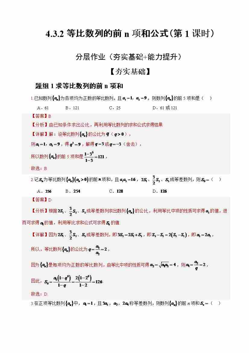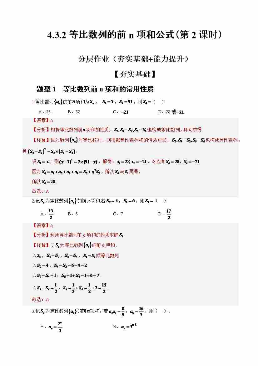 4.3.2等比数列的前n项和公式(第2课时)(分层作业)(解析版)-(人教A版2019选择性必修第二册)