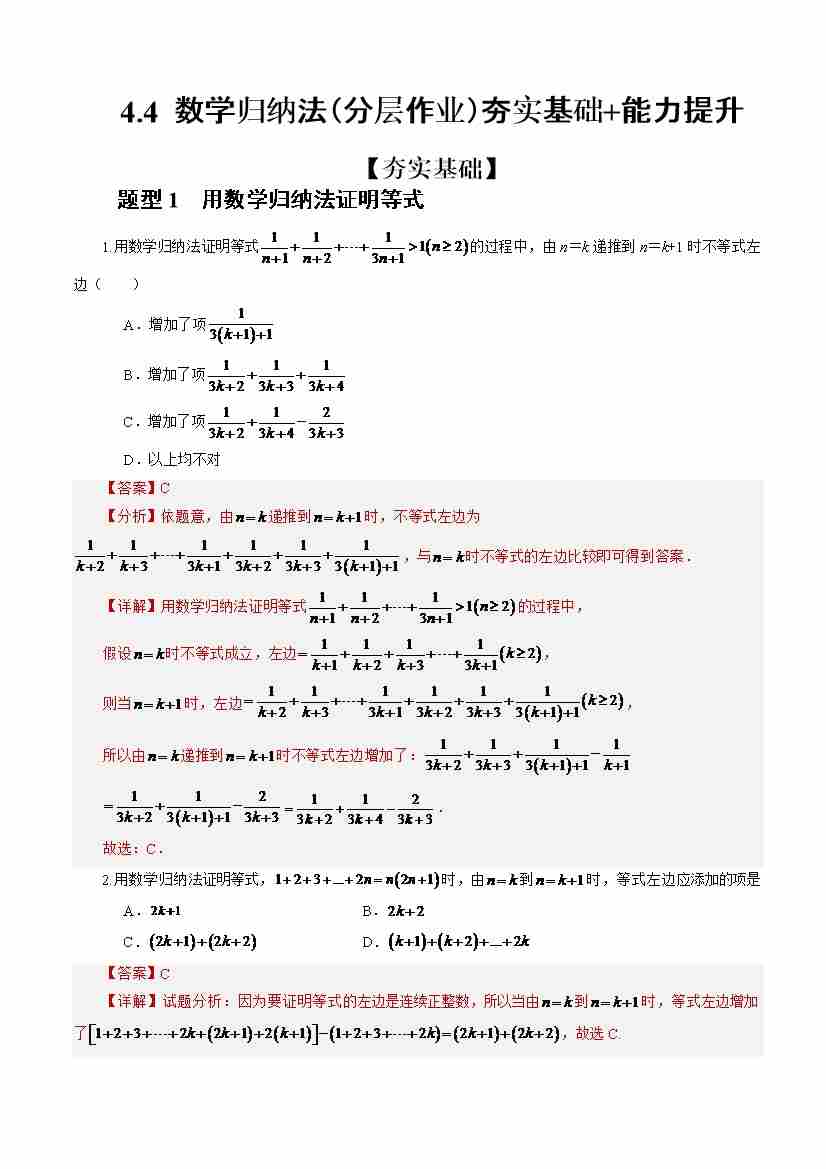 4.4 数学归纳法(分层作业)(解析版)-(人教A版2019选择性必修第二册)