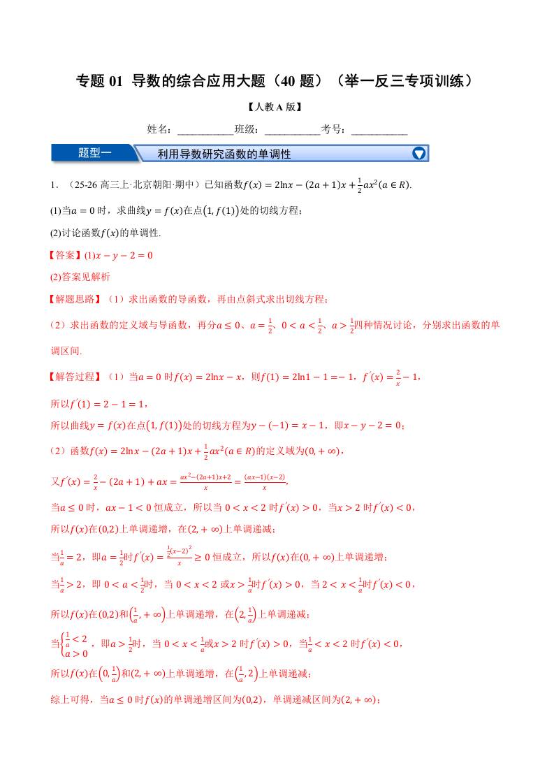专题01 导数的综合应用大题(40题)(举一反三专项训练)(教师版)