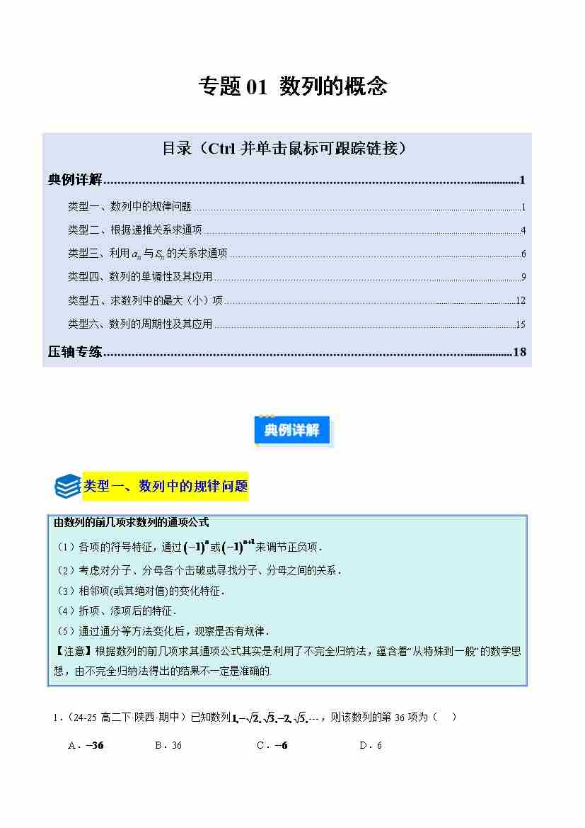 专题01 数列的概念(压轴题6大类型专项训练)(原卷版)