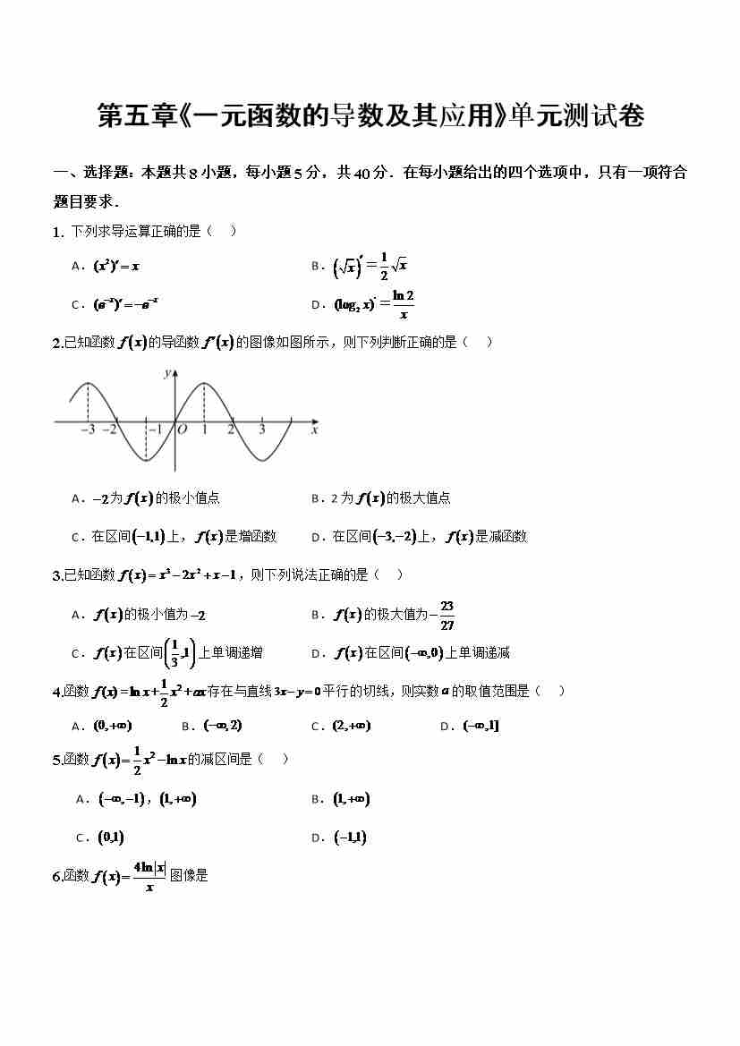 第五章《一元函数的导数及其应用》(单元测试) (原卷版)-(人教A版2019选择性必修第二册)