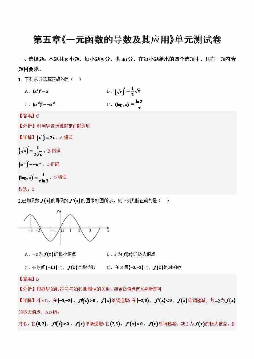 第五章《一元函数的导数及其应用》(单元测试) (解析版)-(人教A版2019选择性必修第二册)