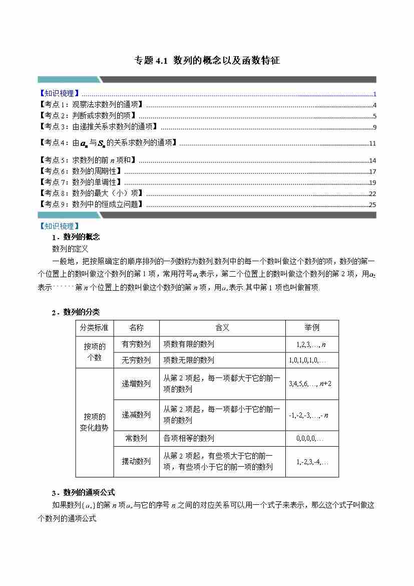 专题4.1 数列的概念以及函数特征(9类必考点)(人教A版2019选择性必修第二册)(教师版)