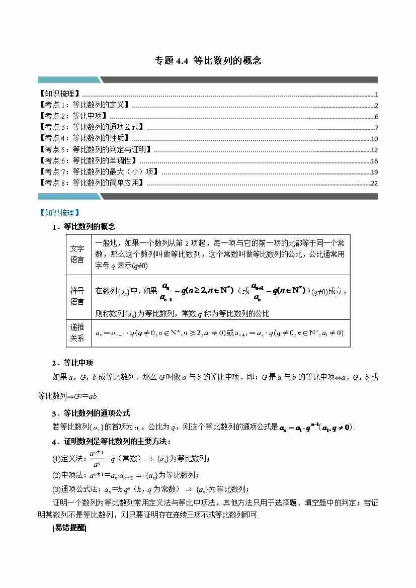 专题4.4 等比数列的概念(8类必考点)(人教A版2019选择性必修第二册)(教师版)
