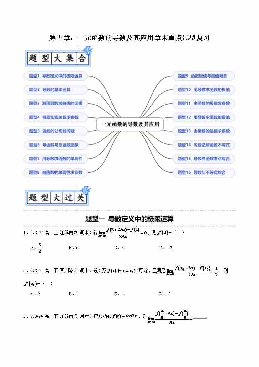 第五章:一元函数的导数及其应用章末重点题型复习(16题型)(原卷版)
