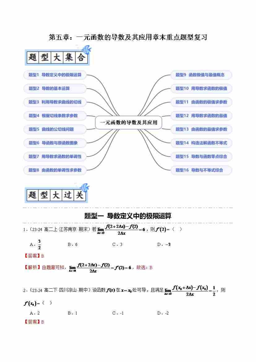 第五章:一元函数的导数及其应用章末重点题型复习(16题型)(解析版)