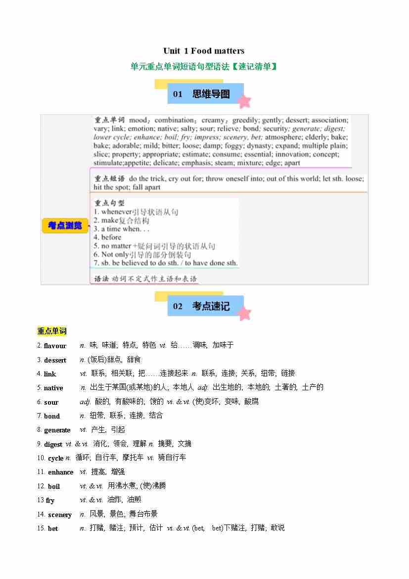Unit 1 Food matters(知识清单)(学生版)