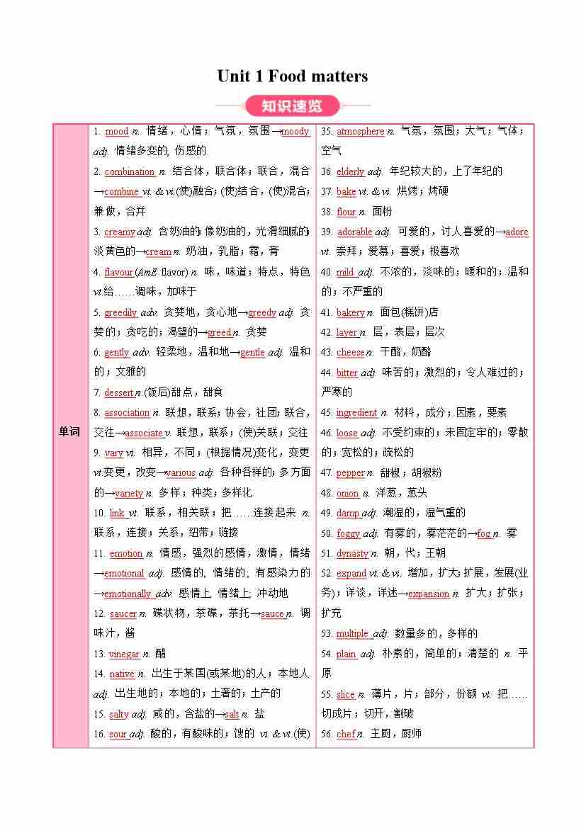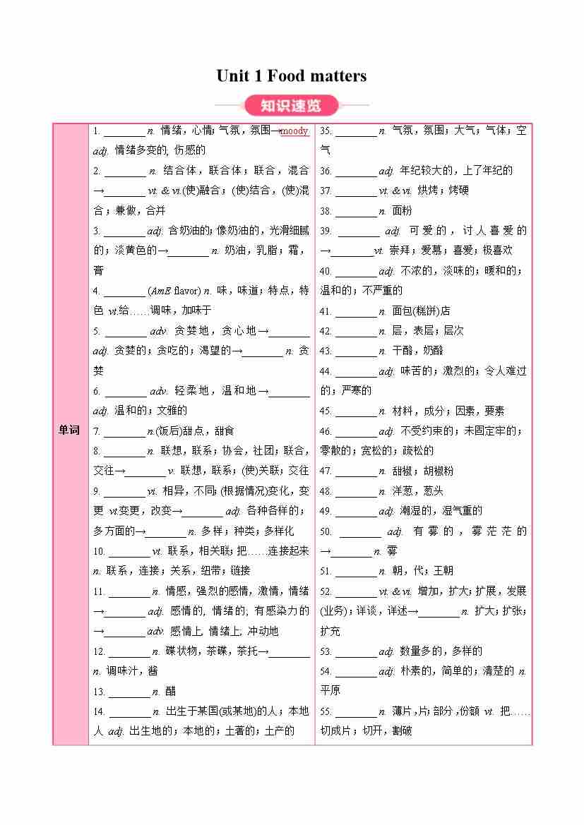 Unit 1 Food matters(知识清单)(答案版)