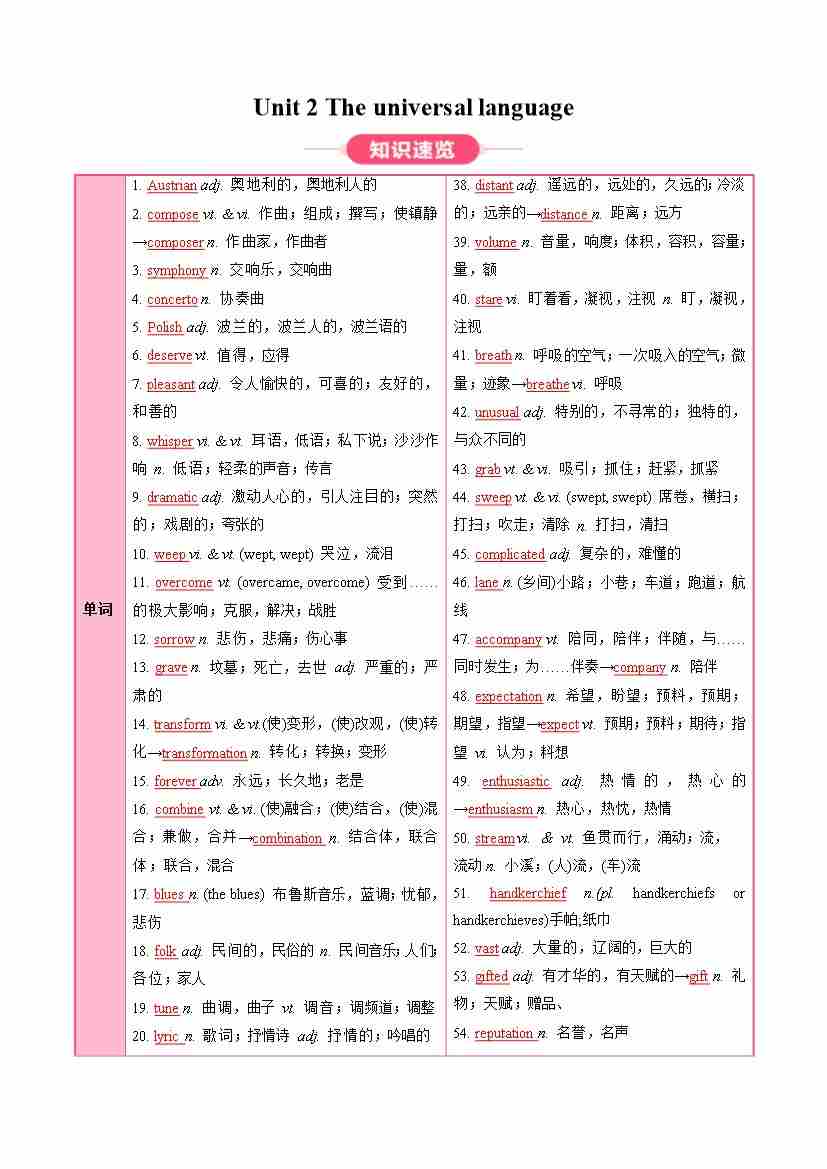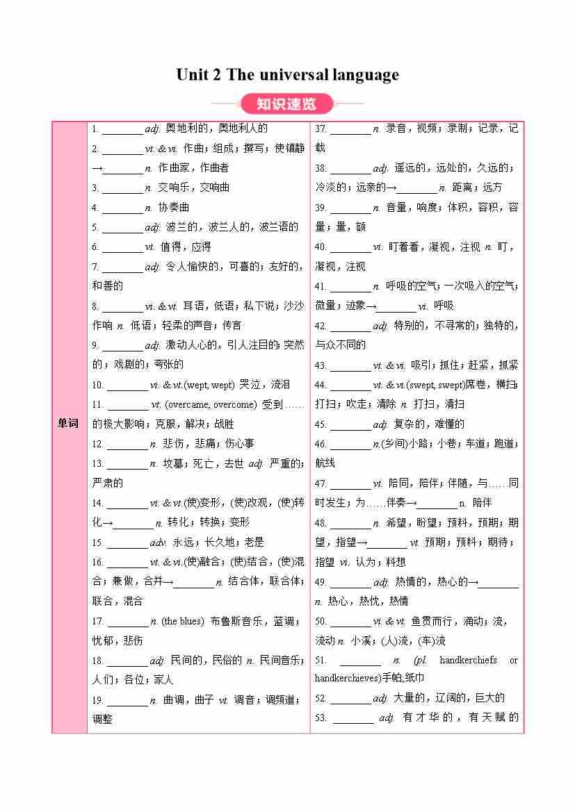 Unit 2 The universal language (知识清单)(答案版)