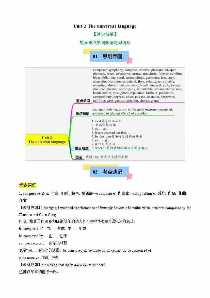 Unit 2 The universal language(知识清单)-(译林版2020选择性必修第一册)