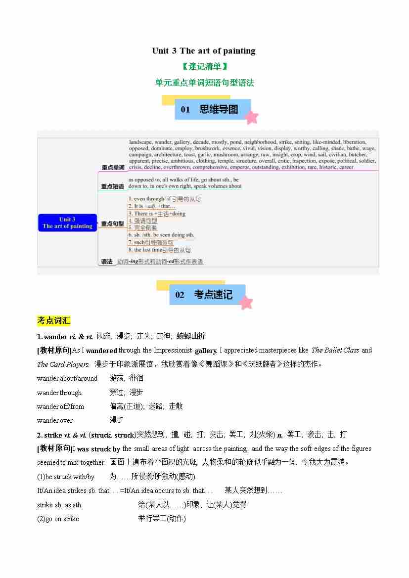 Unit 3 The art of painting (知识清单)(学生版)